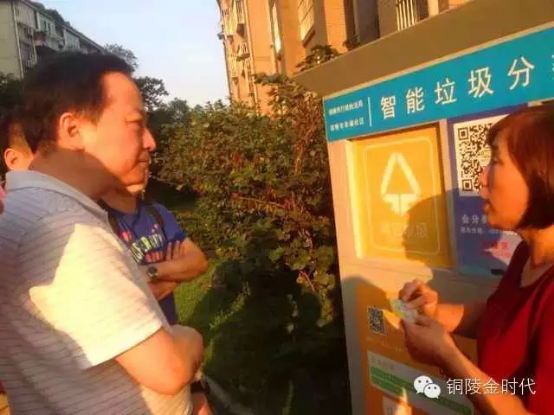 銅陵市金時代科技有限責任公司總經(jīng)理陳玉明向省領導詳細的介紹了智能垃圾分類設備的研發(fā)過程及使用方法。這套智能垃圾分類設備主要是利用先進的物聯(lián)網(wǎng)、互聯(lián)網(wǎng)相融合的技術,實現(xiàn)垃圾的有源可溯。