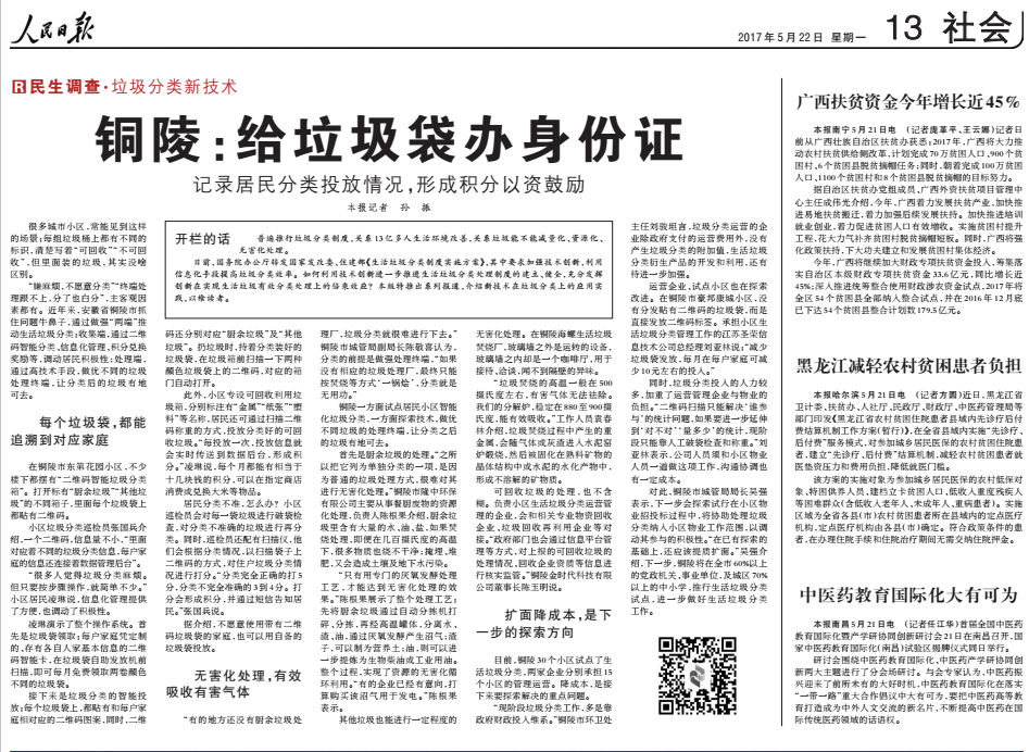 銅陵:給垃圾袋辦身份證(民生調(diào)查·垃圾分類新技術(shù))